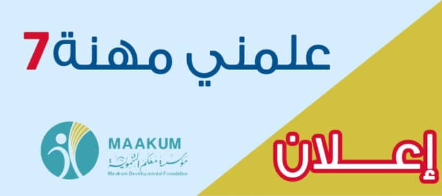 #اعلان_تسجيل للباحثين عن التأهيل لسوق العمل، والتحول من الاحتياج إلى الإنتاج والاعتماد على الذات .. مؤسسة معكم التنموية MAAKUM تضع بين أيديكم فرصة التسجيل في البرنامج التدريبي علمني مهنة7