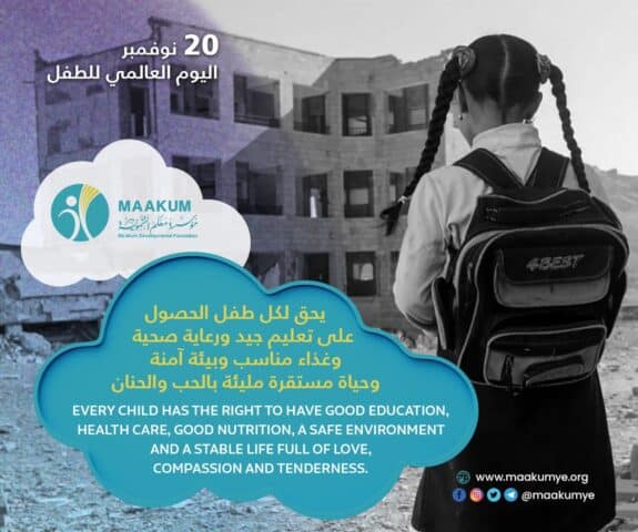 في اليوم العالمي للطفل يحق لكل طفل الحصول على تعليم جيد ورعاية صحية وغذاء مناسب وبيئة آمنة وحياة مستقرة مليئة بالحب والحنان.