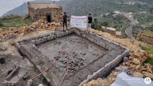 #تعز .. العمل جار على قدم وساق في مشروع تحسين جودة مصادر المياه وتعزيز الصمود لدى سكان الريف من خلال بناء خزان المحزف بمديرية صبر الموادم. #مؤسسة_معكم_التنموية_MAAKUM