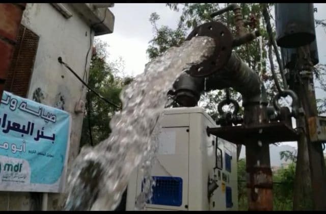 شاهد .. ضخ المياه من بئر البعرارة بعد صيانة مؤسسة معكم التنموية mdf للبئر بالتنسيق مع المؤسسة المحلية للمياه والصرف الصحي بتعز