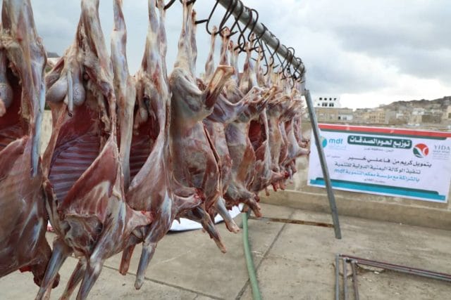 ضمن خطتها لدعم (6.260) أسرة بلحوم الاضاحي بمحافظة تعز لهذا العام 1441 .. مؤسسة معكم التنموية mdf تدشن مشروع توزيع لحوم الأضاحي ..