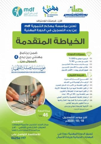 تعز .. تدشين برنامج مهنتي بين يدي4 .. دورة الخياطة المتقدمة بتمويل مؤسسة صلة للتنمية وتنفيذ مؤسسة معكم التنموية mdf